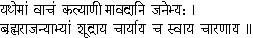 — Thus says the Shukla Yajur Veda (XXVI. 2). Can you show any authority from this Veda of ours that everyone has not the right to it? The Purânas, no doubt, say that a certain caste has the right to such and such a recension of the Vedas, or a certain caste has no right to study them, or that this portion of the Vedas is for the Satya Yuga and that portion is for the Kali Yuga. But, mark you, the Veda does not say so; it is only your Puranas that do so. But can the servant dictate to the master? The Smritis, Puranas, Tantras — all these are acceptable only so far as they agree with the Vedas; and wherever they are contradictory, they are to be rejected as unreliable. But nowadays we have put the Puranas on even a higher pedestal than the Vedas! The study of the Vedas has almost disappeared from Bengal. How I wish that day will soon come when in every home the Veda will be worshipped together with Shâlagrâma, the household Deity, when the young, the old, and the women will inaugurate the worship of the Veda!