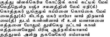 This passuram is the second of the three Paasurams , where the most merifule Mother of ours and the PirAtti of Lord KrishNA , Nappinnai( ILaya Piratti) is being awakened by the assembled Gopis .