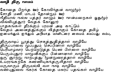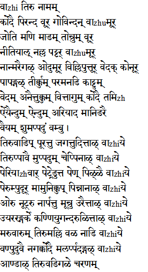 vaazhi thiru naamamkodhai piRandha oor govindhan vaazhumoor thiruvaadip pooraththu jagatthudhiththaaL vaazhiyE AndaaL thiruvadigaLE charaNam |